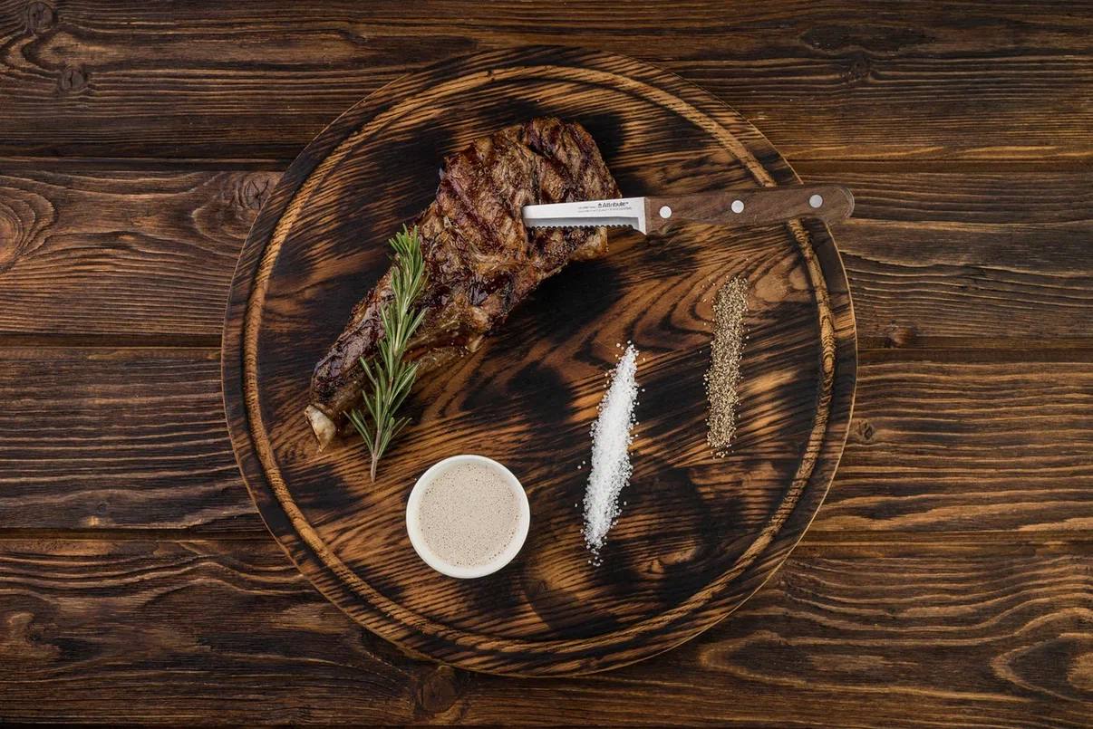 Стейк рибай Аргентина, подается с перечным соусом.
