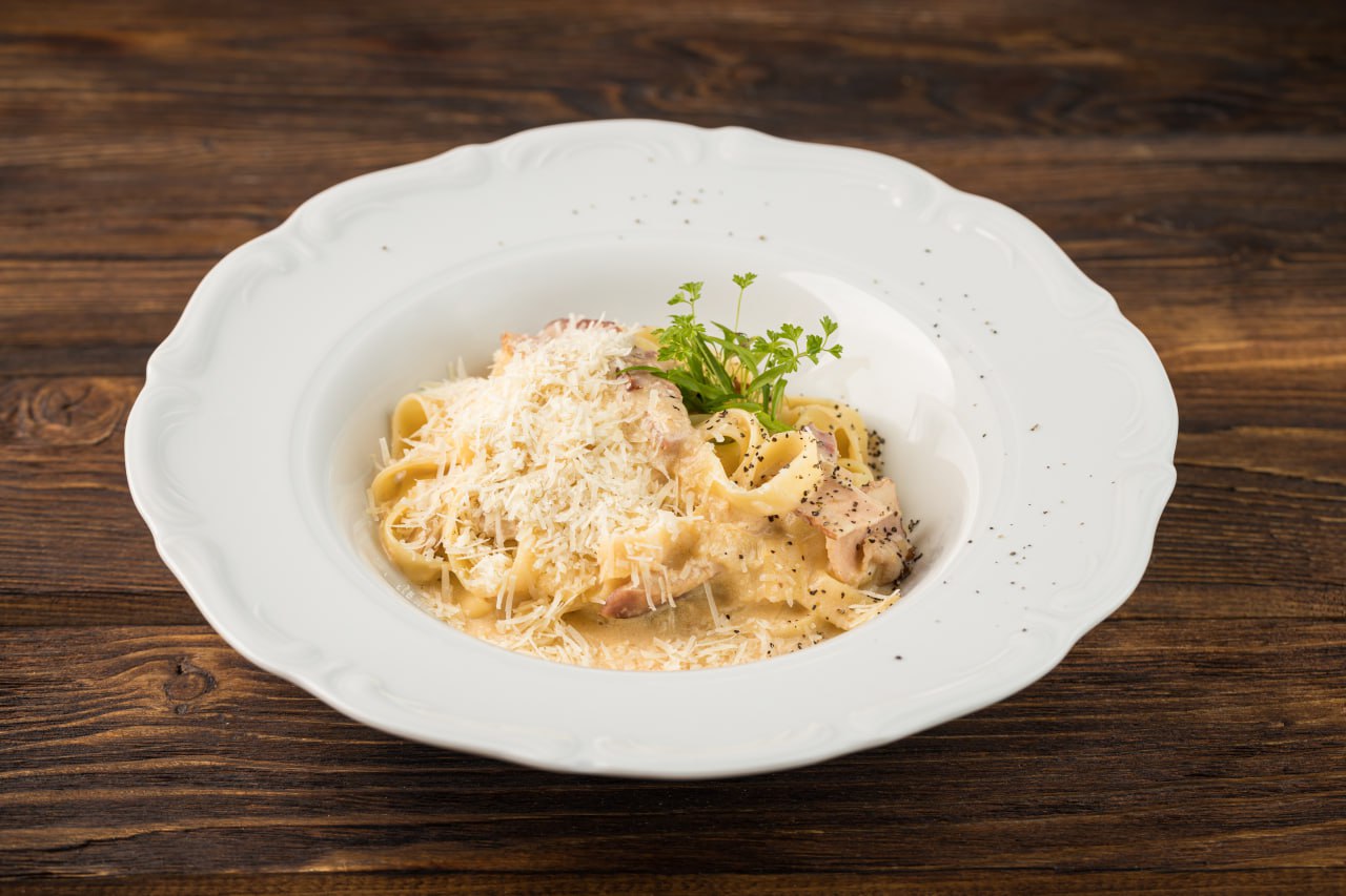 Паста фетучини с беконом в сливочном соусе