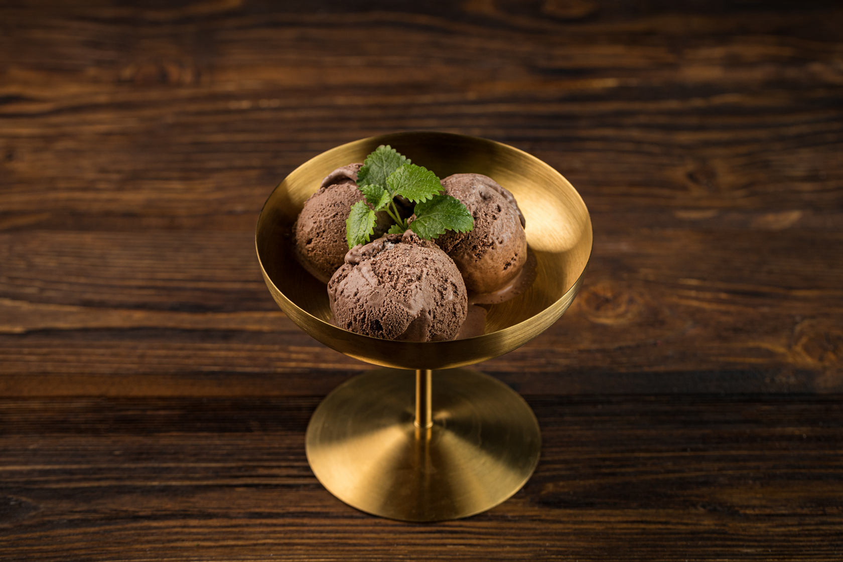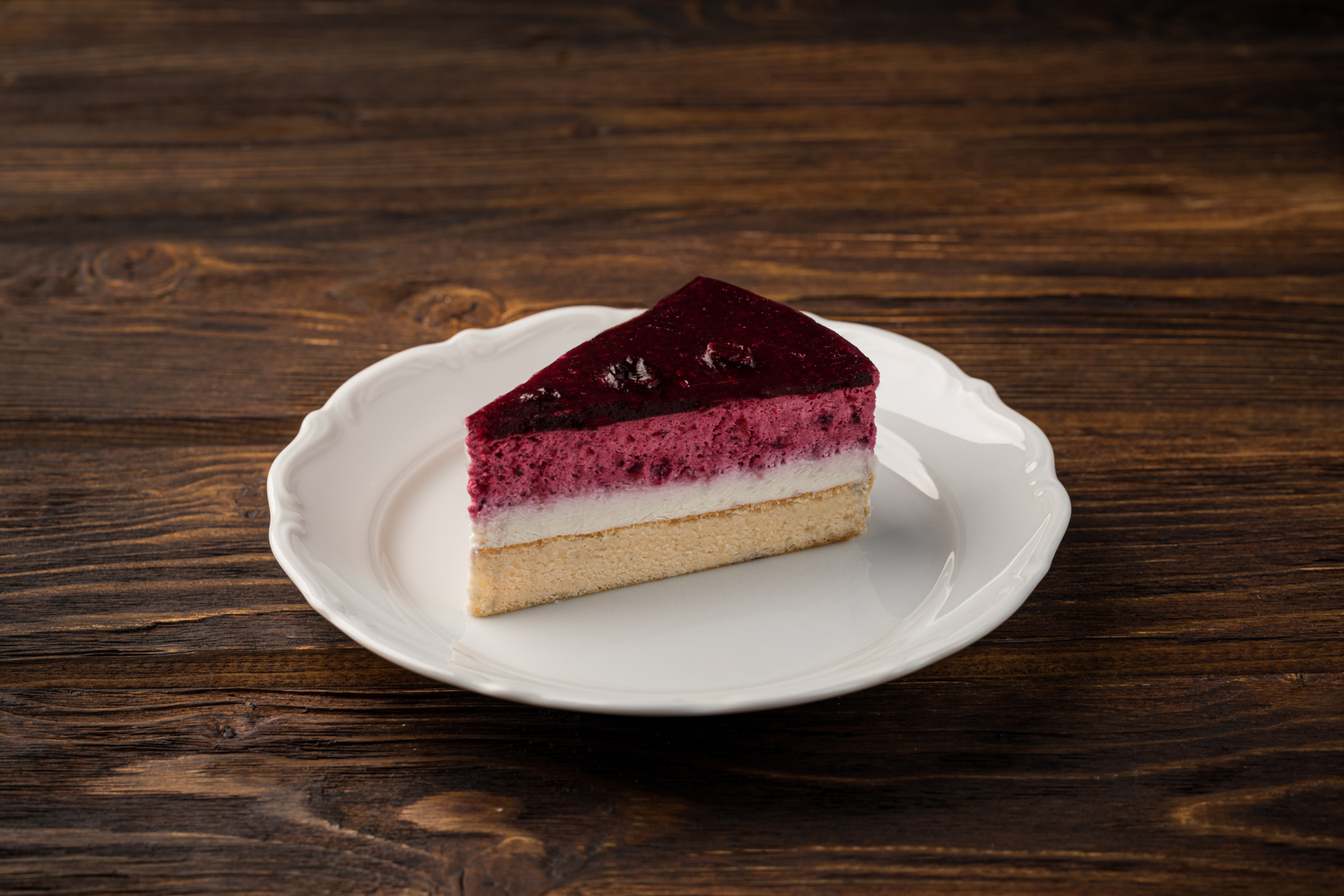 Легкий муссовый десерт на ванильном бисквите с черной смородиной.